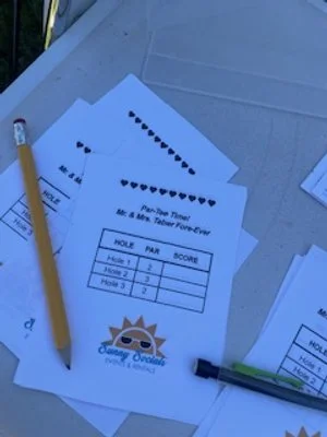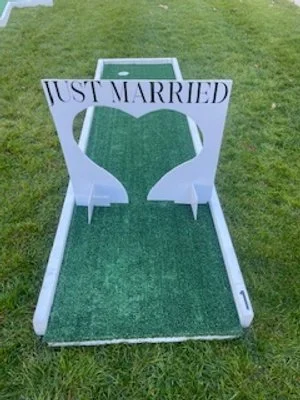 Includes balls, putters, & event decor obstacles specific to your event (wedding, baby shower, graduation, etc)